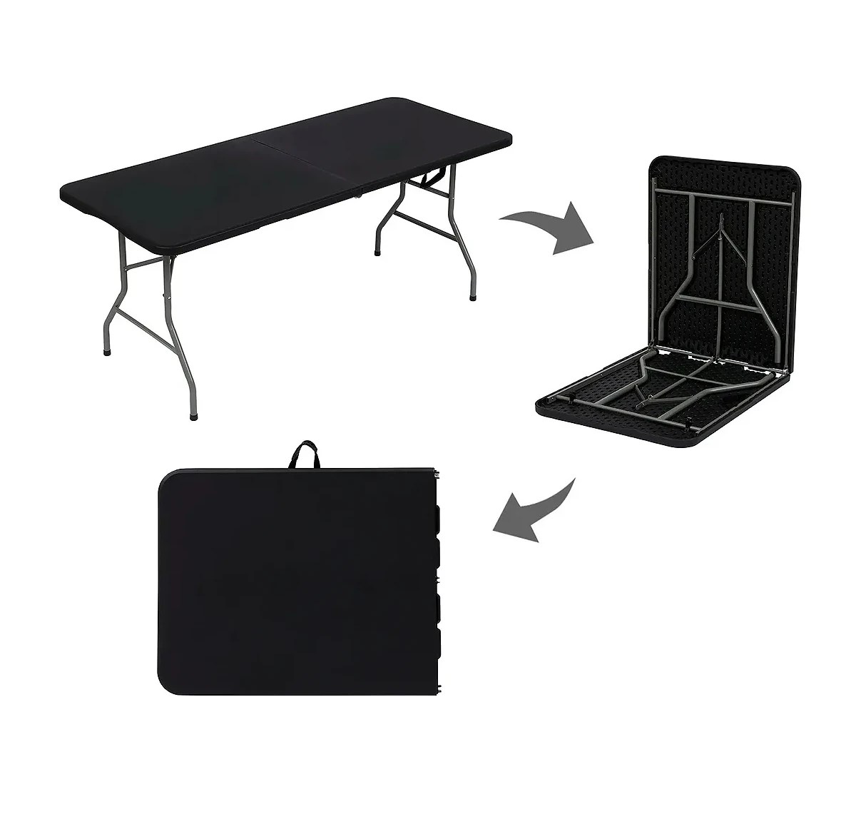 Con una altura de 74 cm, ancho de 74 cm y un largo de 180 cm, esta mesa plastica plegable ofrece un amplio espacio para disfrutar de tus comidas y bebidas.